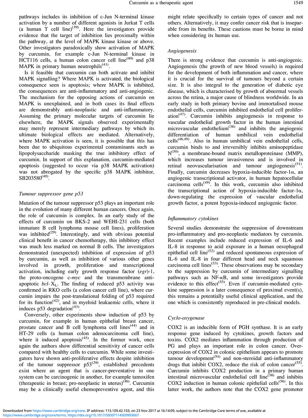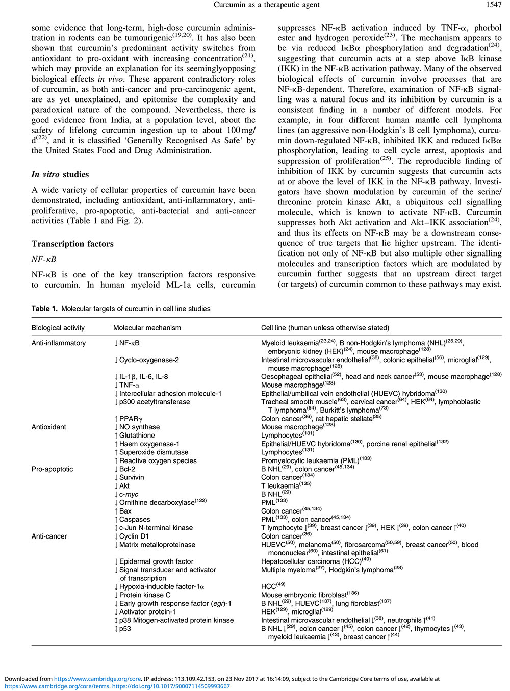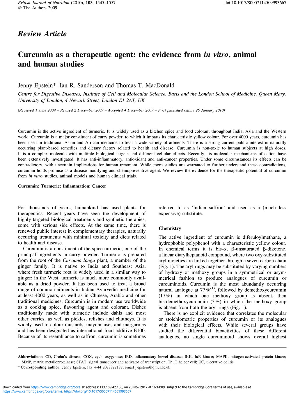 Curcumin as a therapeutic agent: the evidence from in vitro, animal and human studies