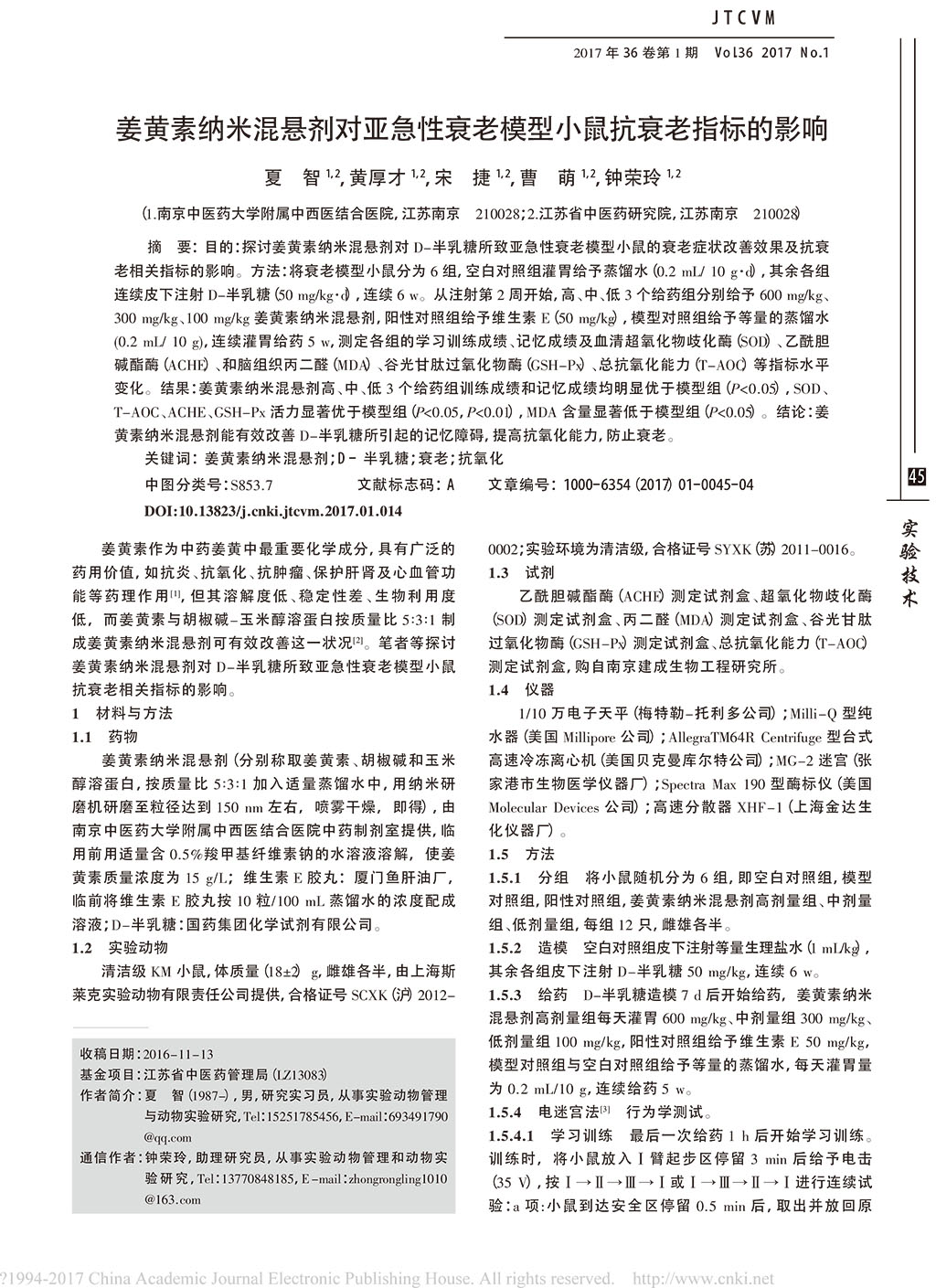 姜黃素納米混懸劑對亞急性衰老模型小鼠抗衰老指標的影響_夏智