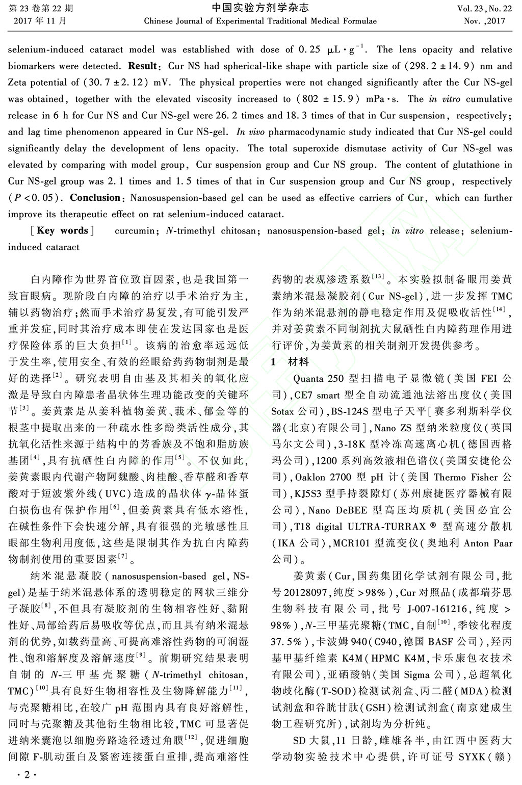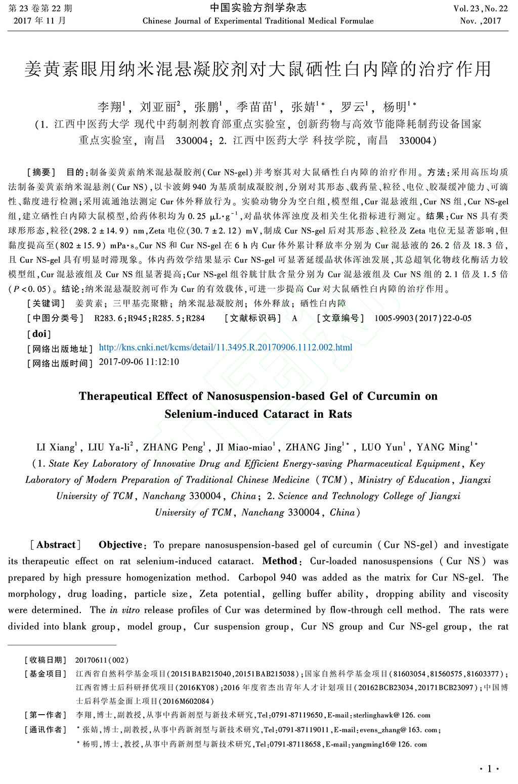 姜黃素眼用納米混懸凝膠劑對大鼠硒性白內(nèi)障的治療作用_李翔_劉亞麗_張鵬_季苗苗_
